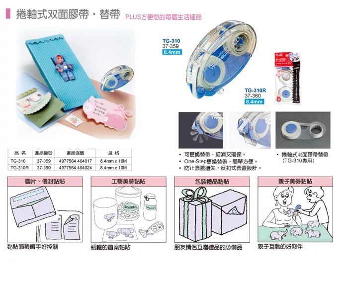 (2個1包)PLUS捲軸雙面膠帶替帶TG-310R(8.4mm×10M)![]()